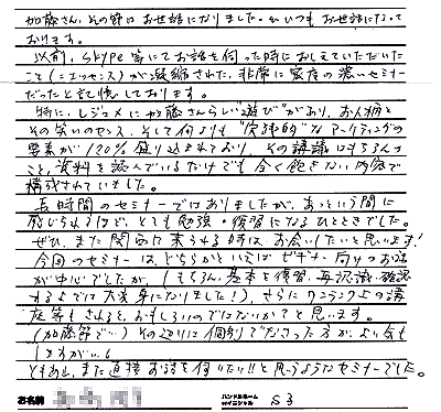 ●前回に引き続き、密度の濃いセミナーに感謝です。(青山英浩さん)